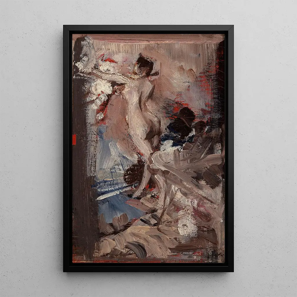 Nu vrouwelijk met tijgerhuid: een ontmoeting tussen sensualiteit en exotisme In "Nu vrouwelijk met tijgerhuid" biedt Giovanni Boldini ons een gedurfde visie op vrouwelijke schoonheid, waar sensualiteit samenkomt met exotisme. De compositie benadrukt een naakte vrouw, gekleed in een tijgerhuid die contrasteert met de zachtheid van haar huid. De warme kleuren en rijke texturen creëren een sfeer die zowel intiem als uitdagend is. Boldini, met zijn beheersing van licht en schaduw, slaagt erin de essentie van vrouwelijkheid vast te leggen en de kijker uit te nodigen deze dualiteit tussen kracht en delicatesse te verkennen. Giovanni Boldini: de icoon van de Belle Époque Giovanni Boldini is een Italiaanse schilder wiens werk de Belle Époque heeft gekenmerkt, een periode waarin kunst en mode op een ongekende manier verweven waren. Geboren in 1842, verwierf hij snel bekendheid dankzij zijn flamboyante stijl en zijn vermogen om de geest van zijn tijd vast te leggen. Geïnspireerd door de impressionistische beweging, wist Boldini levendige portretten te creëren die niet alleen de uitstraling van zijn onderwerpen vastleggen, maar ook hun karakter. Zijn werk weerspiegelt een tijd van verandering en emancipatie, waarin schoonheid en sensualiteit in al hun pracht werden gevierd. Een decoratief kunstdruk met meerdere voordelen De kunstdruk van het schilderij "Nu vrouwelijk met tijgerhuid" is een pronkstuk dat uw interieurdecoratie zal verfraaien. Of het nu in een woonkamer, kantoor of slaapkamer is, dit doek brengt een vleugje elegantie en karakter in uw ruimte. De kwaliteit van de afdruk garandeert een nauwkeurigheid in de details van het originele kunstwerk, waardoor deze kunstdruk een verstandige keuze is voor kunstliefhebbers. Door dit werk in uw inrichting te integreren, creëert u een sfeer die zowel chique als gedurfd is, en brengt u tegelijkertijd hulde aan de kunst van Boldini.