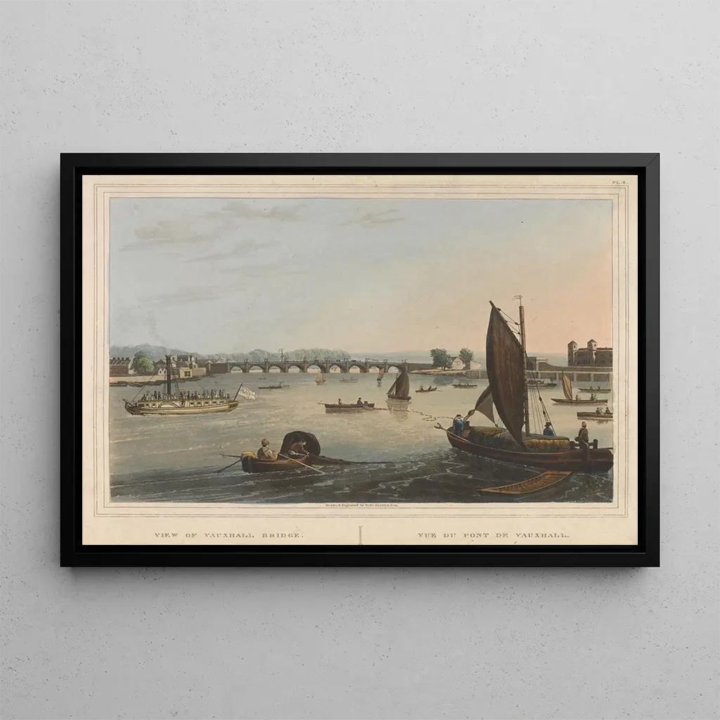 Vue du pont de Vauxhall, œuvre de Robert Havell Jr., nous transporte dans une scène vibrante de la vie londonienne au XIXe siècle. Ce tableau dépeint le célèbre pont de Vauxhall, animé par des personnages en pleine promenade, profitant d'une journée ensoleillée. Les teintes lumineuses et les reflets sur l'eau ajoutent une dimension presque poétique à la composition. Havell, avec son talent pour capturer la lumière et le mouvement, parvient à créer une atmosphère vivante et joyeuse, invitant le spectateur à s'immerger dans cette scène de convivialité.