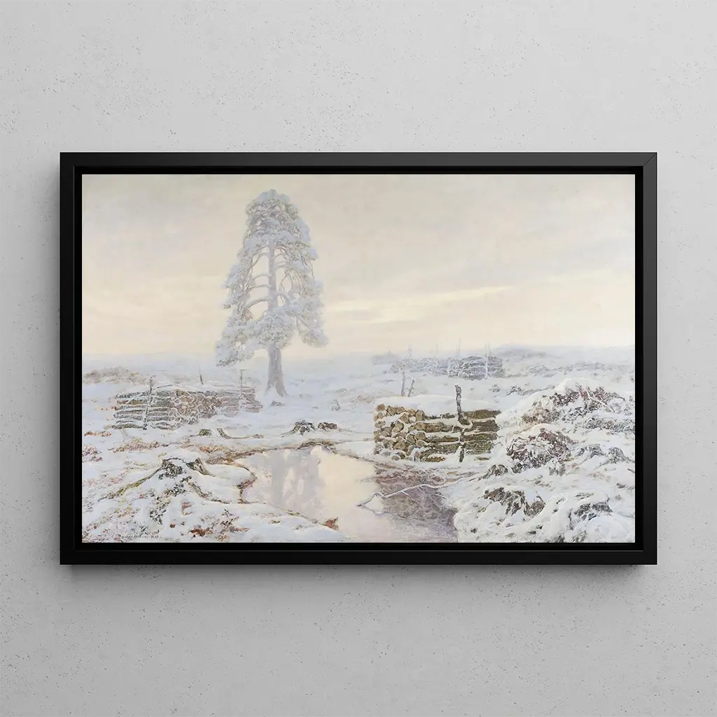 De kunstdruk van "Winterlandschap" is een ideaal decoratief stuk om een vleugje sereniteit aan uw interieur toe te voegen. Of het nu in een woonkamer, kantoor of slaapkamer is, dit schilderij nodigt uit tot contemplatie en dagdromen. De kwaliteit van de kunstdruk garandeert een trouwheid aan de details en de originele kleuren, terwijl het een onmiskenbare esthetische aantrekkingskracht biedt. Opgehangen aan een muur wordt het een centraal punt dat de sfeer van uw ruimte verrijkt, en tegelijkertijd de tijdloze schoonheid van de winter oproept.