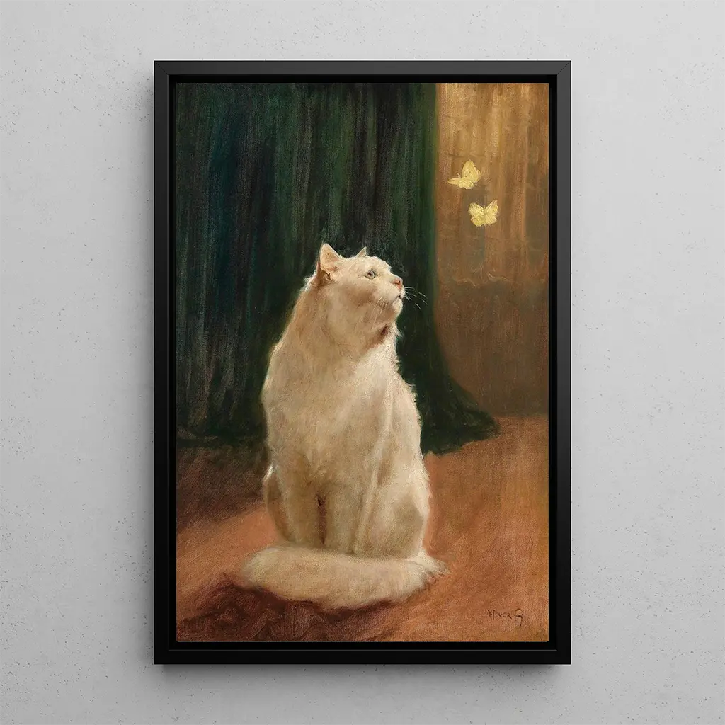 Kunstdruk | Chat blanc et deux papillons citron - Arthur Heyer