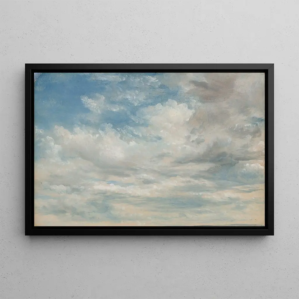De nuages van John Constable roepen een sfeer van rust en contemplatie op. Met nuances van stralend wit en subtiel grijs vangt dit doek de beweging van de hemel, waarbij elke wolk lijkt te drijven met gratie. De techniek van Constable, die olie en delicate penseelstreken combineert, creëert een levendige textuur die de kijker uitnodigt om onder te dompelen in deze hemelse scène. Het werk, zowel rustgevend als dynamisch, transporteert ons naar een wereld waar de natuur heerst, en biedt een moment van ontsnapping en reflectie op de schoonheid van de hemel.