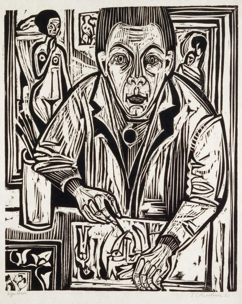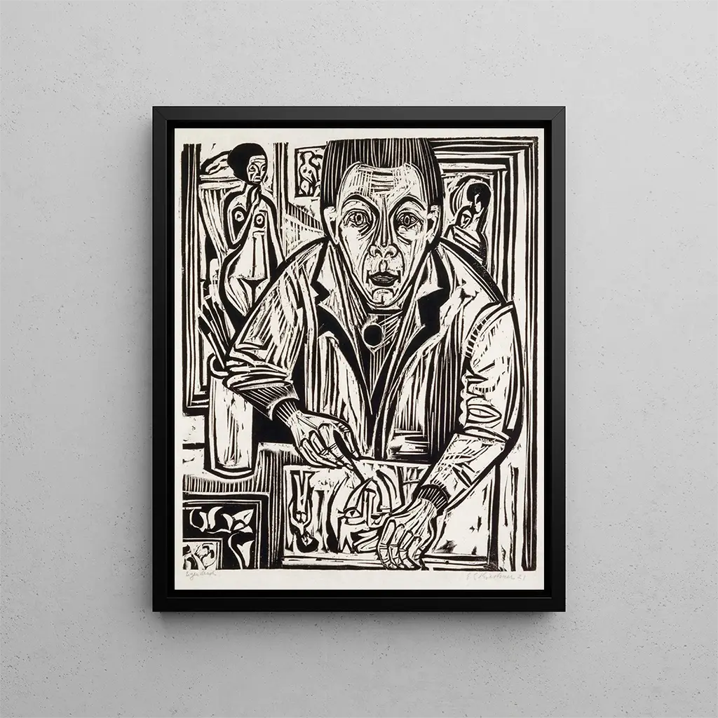 Kunstdruk | Houtgravure zelfportret - Ernst Ludwig Kirchner
