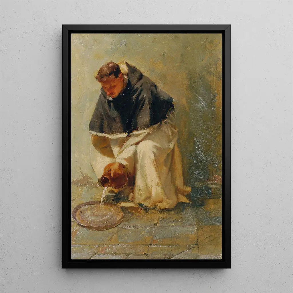 De Autoportrait in dominicaanse van Johann Till le Jeune is een kunstdruk die uitnodigt tot reflectie over identiteit en spiritualiteit. In dit doek stelt de kunstenaar zichzelf voor gekleed in een monnikenroek, met gelaatstrekken benadrukt door een zachte lichtval die zijn nadenkende blik accentueert. De aardetinten en bruintinten creëren een sfeer die zowel sereen als contemplatief is. De olieverftechniek maakt het mogelijk om de texturen van de kleding en de subtiliteit van de schaduwen weer te geven, wat de indruk van authenticiteit versterkt. Dit schilderij, door zijn oprechte uitdrukking, dompelt ons onder in de innerlijke wereld van de kunstenaar, waarin zijn gedachten en emoties worden onthuld.