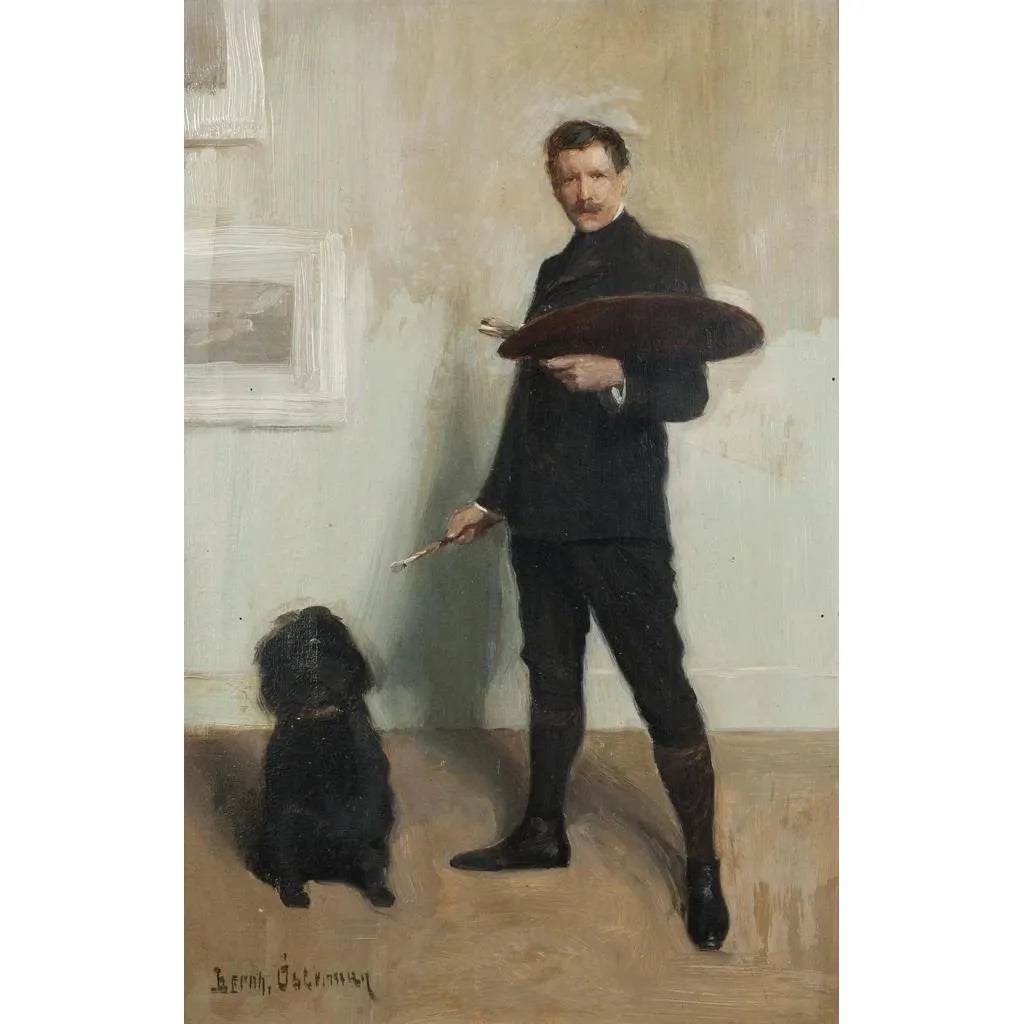 Bernhard Störmann, portraitiste de renom du début du XXe siècle, a su capturer non seulement l'apparence de ses sujets, mais aussi leur essence. Influencé par les courants artistiques de son époque, il a développé un style unique qui allie précision et émotion. Son "Autoportrait avec chien" témoigne de son habileté à se représenter tout en intégrant des éléments de sa vie personnelle. Cette œuvre s'inscrit dans une période où les artistes cherchaient à explorer leur identité à travers leur art, faisant de Störmann un acteur clé de cette introspection artistique.
