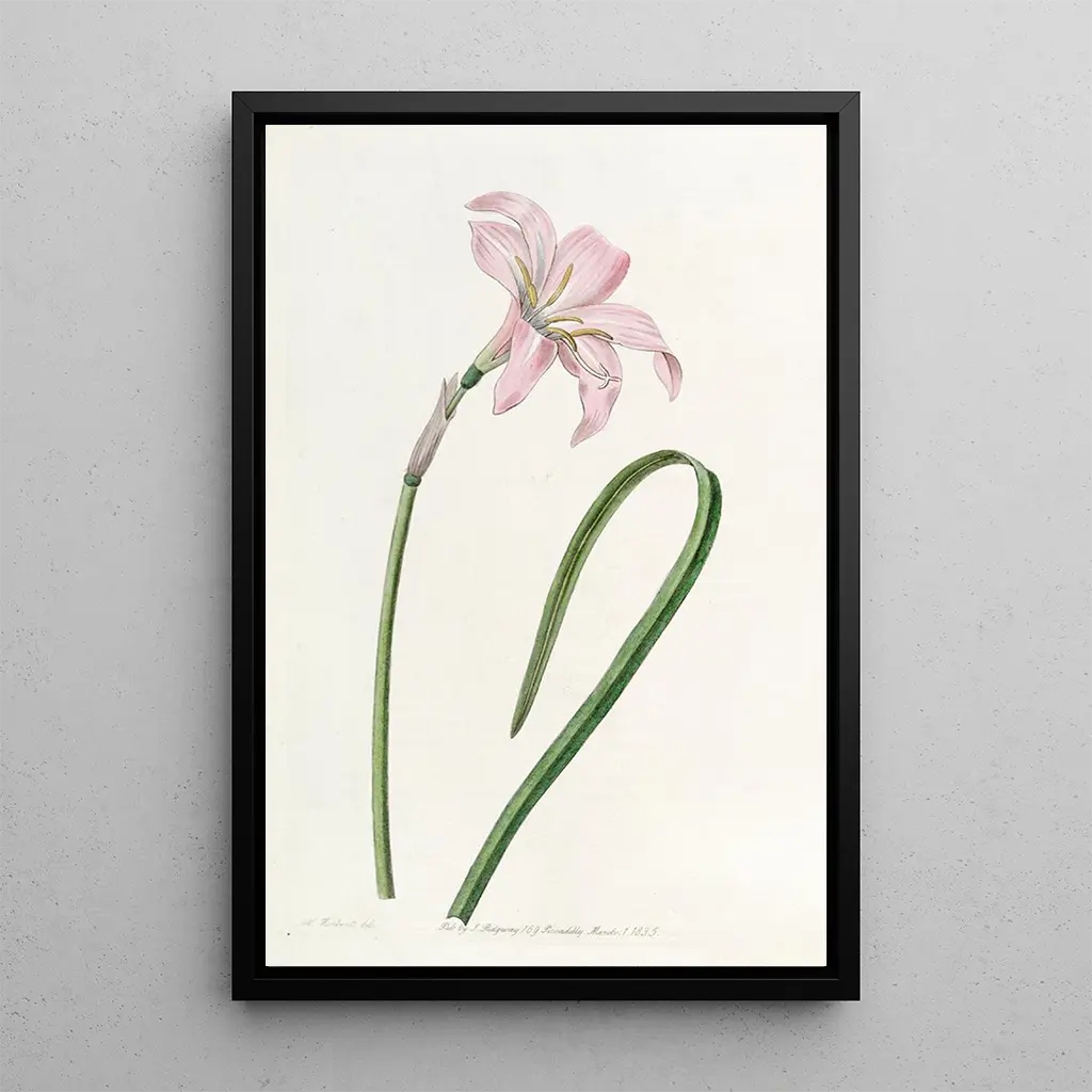 Het kunstdruk Zéphyranthe de Spofforth, eveneens vervaardigd door Sydenham Edwards, is een verfijnde weergave van deze zeldzame en elegante bloem. De nuances van wit en roze verweven zich gracieus, en roepen de lichtheid en fragiele schoonheid van de plant op. De aquareltechniek maakt het mogelijk om de transparantie van de bloemblaadjes vast te leggen, terwijl de subtiel gekleurde achtergrond een rustgevende natuurlijke omgeving suggereert. Dit kunstwerk nodigt uit tot contemplatie en biedt een moment van sereniteit voor wie het bekijkt, alsof men wordt meegenomen naar een geheime tuin waar de schoonheid van de natuur heerst.