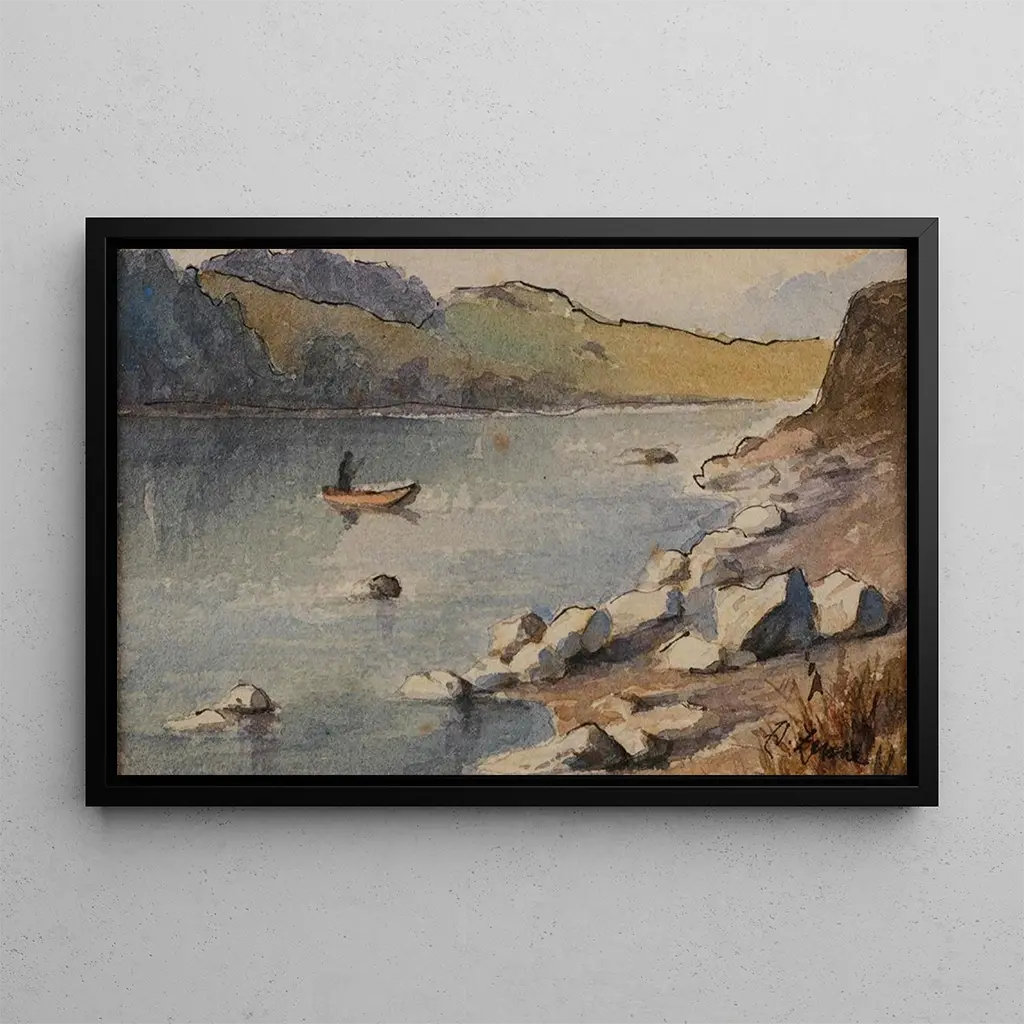 Zille aan de waterkant: een scène van sereniteit en gezelligheid In deze kunstdruk van "Zille aan de waterkant" dompelt de kunstenaar Eduard Zetsche ons onder in een rustige sfeer, waar natuur en menselijkheid harmonieus samenleven. De zachte kleuren en de nuances van blauw roepen de rust op van een zomerse dag, terwijl de personages, verdiept in hun activiteiten, een gezellige sfeer creëren. De techniek van Zetsche, gekenmerkt door delicate penseelstreken en een nauwgezette aandacht voor details, brengt deze idyllische scène tot leven. Elk element, van de reflecties in het water tot de omliggende bladeren, draagt bij aan een evenwichtige compositie die uitnodigt tot contemplatie. Eduard Zetsche: een meester van het genre schilderen in de 19e eeuw Eduard Zetsche, actief in de 19e eeuw, wordt erkend om zijn werken die het dagelijks leven vastleggen met een unieke gevoeligheid. Geïnspireerd door de romantische beweging, specialiseerde hij zich in genre schilderkunst, waarbij hij scènes uit het plattelandsleven en momenten van gezelligheid benadrukte. Zijn vermogen om menselijke emoties weer te geven via eenvoudige maar suggestieve composities maakte hem tot een gerespecteerde kunstenaar van zijn tijd. Hoewel minder bekend dan sommige van zijn tijdgenoten, heeft Zetsche een blijvende indruk achtergelaten in de kunstwereld, en zijn werken worden nog steeds gewaardeerd om hun charme en authenticiteit. Een decoratief stuk met vele voordelen De kunstdruk van "Zille aan de waterkant" is een ideaal decoratief stuk voor diverse ruimtes, of het nu een woonkamer, kantoor of slaapkamer is. De rustgevende sfeer en de verfijnde esthetiek brengen een vleugje sereniteit in elk interieur. Gemaakt van hoogwaardige materialen, garandeert dit doek een opmerkelijke trouw aan de kleuren en details van het originele werk. Door te kiezen voor deze kunstdruk, kiest u voor een schilderij dat niet alleen uw ruimte verfraait, maar ook een verhaal en emotie oproept, waardoor uw dagelijkse omgeving wordt verrijkt.