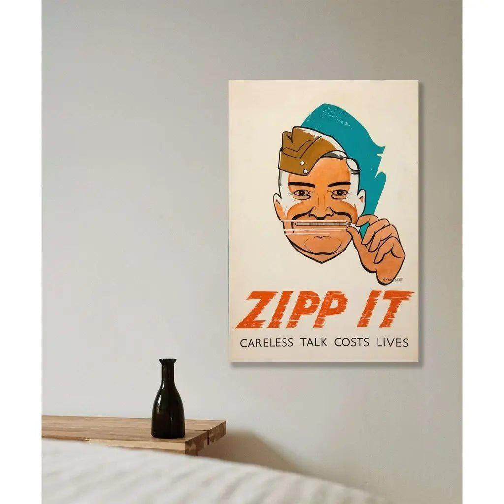 Duik in de geschiedenis met onze authentieke replica van de iconische poster "Zipp it. Careless talk costs lives", gemaakt door de Engelse kunstenaar Leonard Raven-Hill tussen 1939 en 1946. Dit historische stuk uit de Tweede Wereldoorlog vangt de geest van die tijd, en moedigt burgers aan tot voorzichtigheid en discretie om de nationale veiligheid te beschermen.