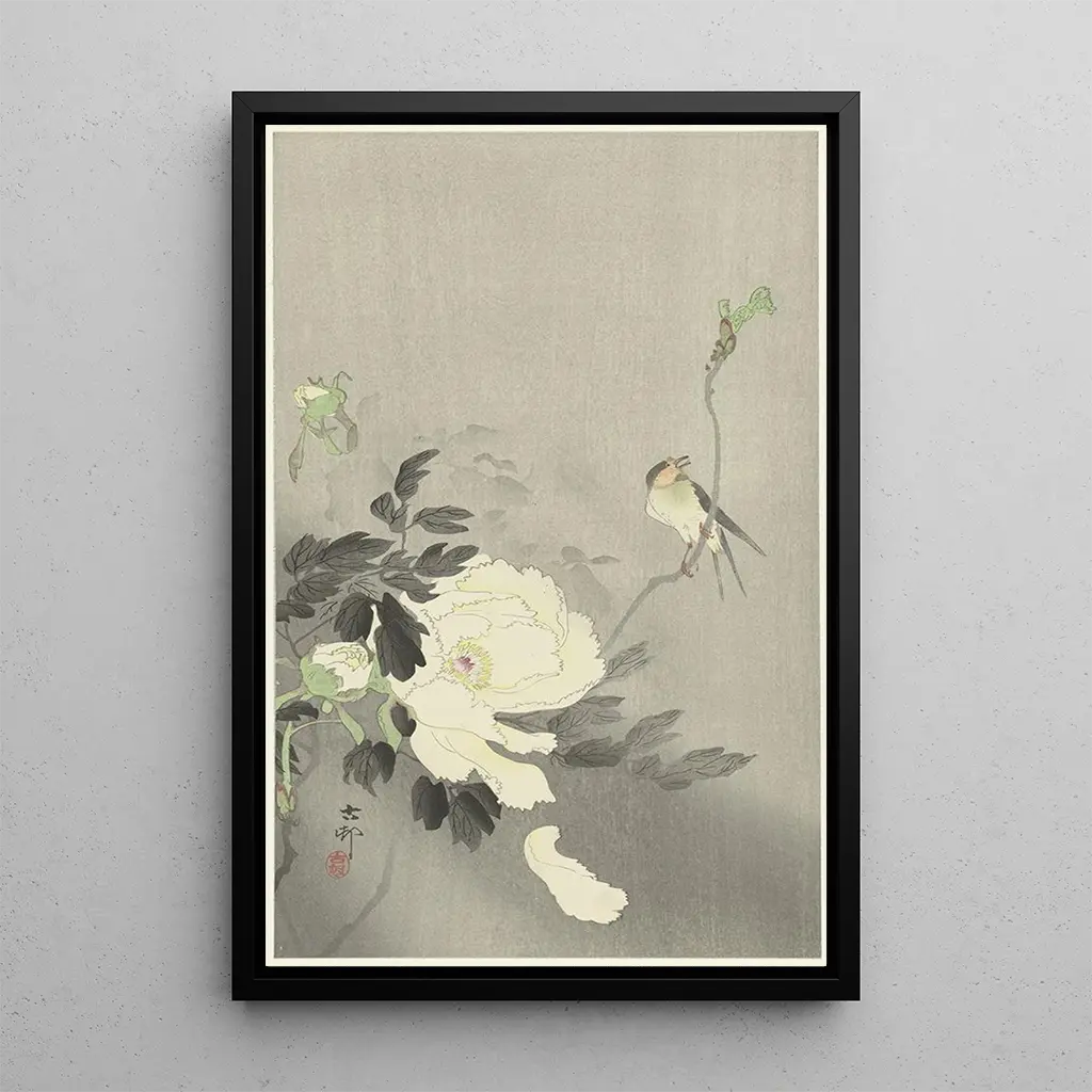 Kunstdruk | Hirondelle avec pivoine - Ohara Koson