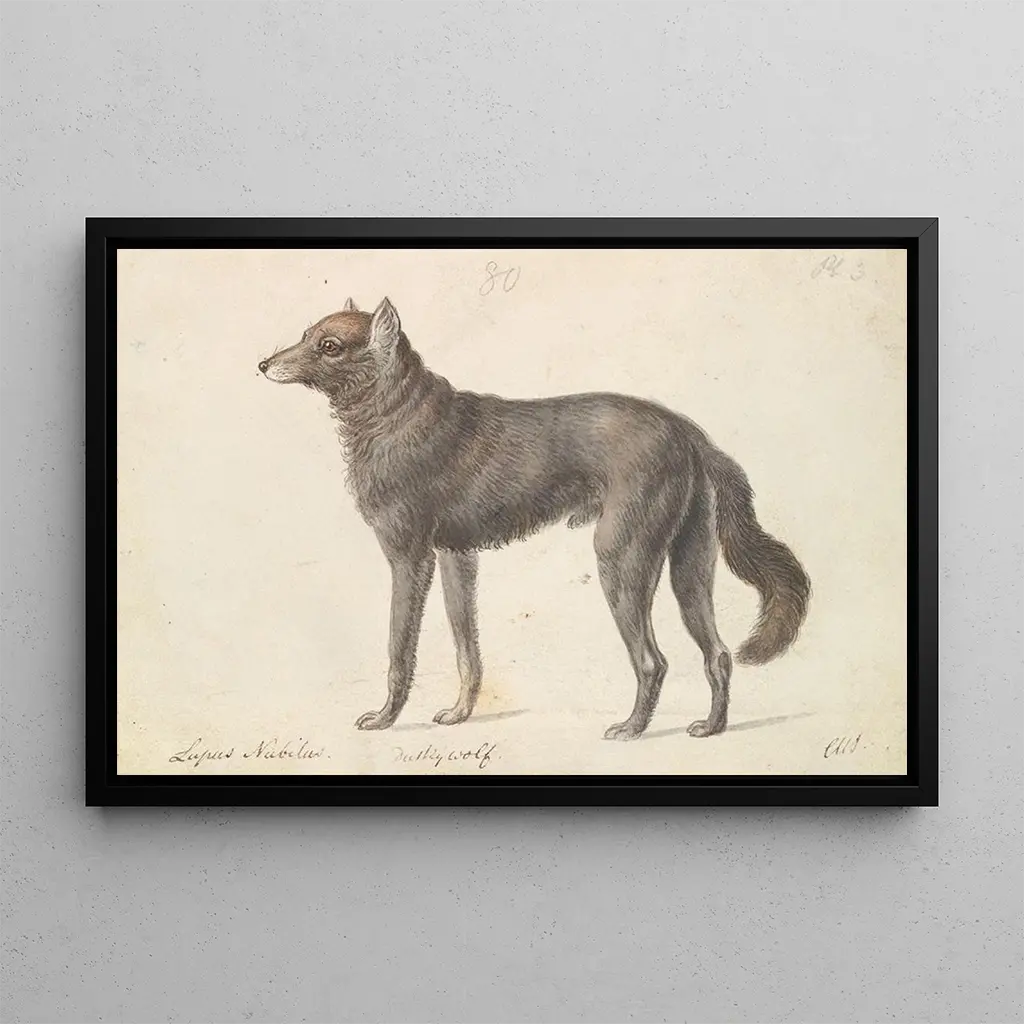 Loup Noir : een wilde majesteit "Loup Noir" van Charles Hamilton Smith is een boeiend kunstwerk dat de schoonheid en kracht van dit iconische dier benadrukt. De voorstelling van de wolf, met zijn donkere vacht en scherpe ogen, creëert een sfeer die zowel mysterieus als majestueus is. De minutieuze details van de vacht en de intense uitdrukking van het gezicht getuigen van een nauwkeurige observatie van de natuur. Het kleurenpalet, gedomineerd door tinten zwart, grijs en witte accenten, benadrukt het wilde en ontembare karakter van dit dier. Dit schilderij nodigt uit tot reflectie over de fauna en de relatie tussen mens en natuur. Charles Hamilton Smith : een pionier in de dierenkunst Charles Hamilton Smith, Britse kunstenaar uit het begin van de 19e eeuw, wordt erkend om zijn illustraties en schilderijen van dieren. Geïnspireerd door de romantiek, wijdde hij zijn carrière aan het realistisch weergeven van de fauna. Smith reisde de wereld rond, observeerde en documenteerde diverse soorten, wat hem tot een referentie maakte in het veld van de dierenkunst. Zijn werk "Loup Noir" illustreert perfect zijn talent en zijn inzet voor een getrouwe weergave van dieren in hun natuurlijke habitat, waardoor hij een pionier van zijn tijd is. Een decoratief stuk met vele voordelen De kunstdruk van "Loup Noir" is een gedurfde decoratieve keuze die zeker de aandacht zal trekken. Ideaal voor een woonkamer, kantoor of slaapkamer, brengt dit doek een vleugje wilde natuur in uw interieur. De afdrukkwaliteit garandeert een nauwkeurige weergave van de details en kleuren van het originele werk, terwijl het een onmiskenbare esthetische aantrekkingskracht heeft. Door dit schilderij in uw decoratie te integreren, creëert u een ruimte die de kracht en schoonheid van de dierenwereld uitstraalt, en tegelijkertijd bewondering en reflectie oproept.